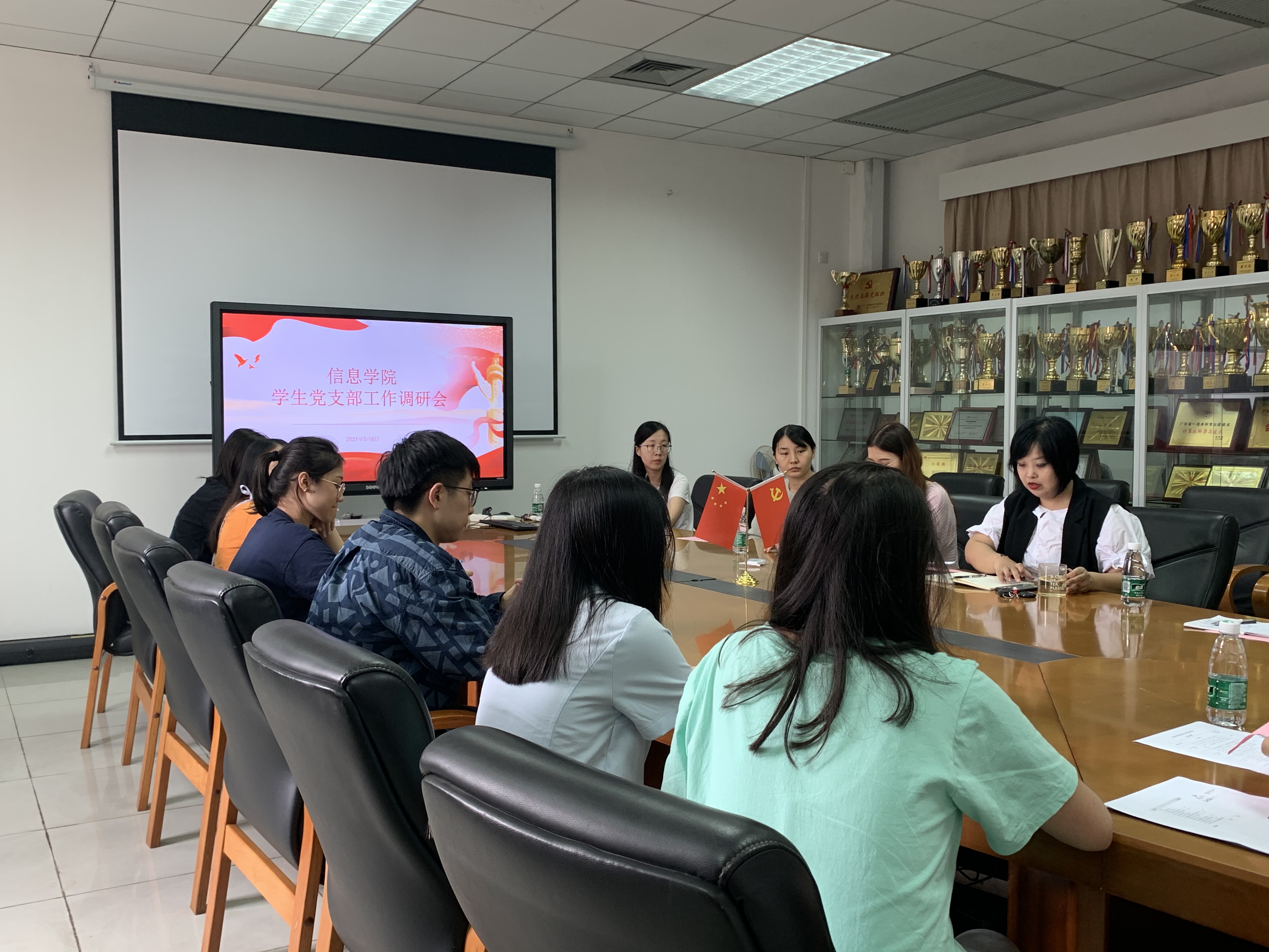 5月6日下午,信息学院党委书记朱珍葶深入学生党支部调研党员发展与培养情况,学院副书记肖锋、全体学生党支部书记、副书记和党建干部代表参加了调研。