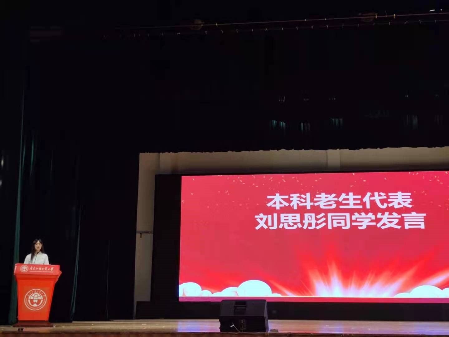 紧随其后发言的是老生代表刘思彤,她首先向21级的新生们表示热烈的欢迎,她还给同学们提出了两点建议:第一,必须明确好大学每一个阶段的目标;第二,在明确了目标的前提下,做好合适的规划、保持对学习的热情与持之以恒的努力。