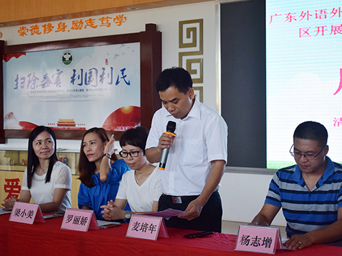 首先,Oasis服务队跟随着广外三下乡大队伍来到了何黄玉湘中学,当地教育局领导罗丽娇老师、当地学校领导以及我校信息学院党委副书记麦培年书记热情地迎接了我们。届时我们召开了“赴清远市清新区乡村学校少年宫教育帮扶暨大学生暑假三下乡社会实践活动”启动仪式。麦书记首先介绍了广东外语外贸大学,紧接着强调了志愿活动的安全性问题和纪律性问题,并对此行活动表达了祝愿。随后各支队伍分别出发前往各自的基地。