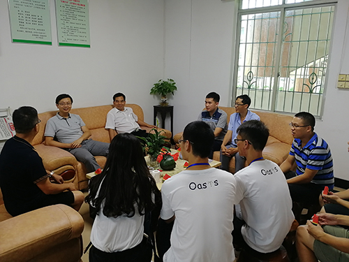 下午两点左右,麦培年书记一行领导亲自前往石坎中学,与校方及Oasis服务队成员进行交谈。在交谈中,谭世忠校长与王青春副校长对石坎中学以及广东外语外贸大学的情况进行了深入交流。在对话中,石坎中学校方与我校领导再次强调了夏令营期间的安全问题。同时,麦培年书记指出:我们作为服务队,帮助别人亦是在成就自己。