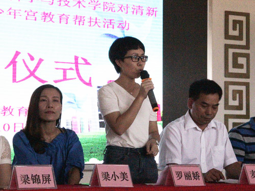接着,清远市清新区教育局五城同创办代表罗丽娇致辞,对广东外语外贸大学暑期“三下乡”社会实践队的到来表示热烈的欢迎,并表示将尽己所能,协助好社会实践队开展各项活动。