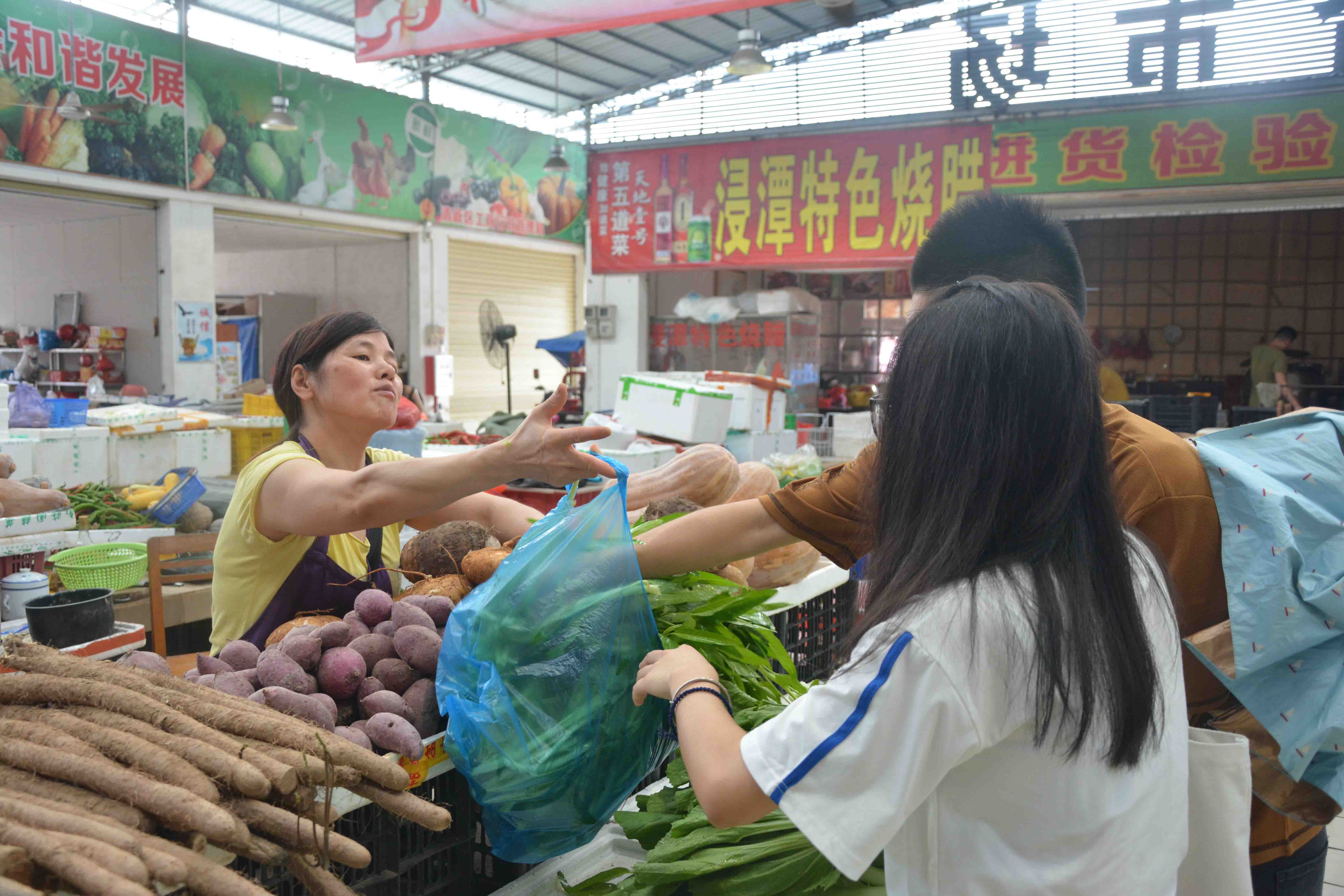 在市场,为了食材的新鲜与性价比,后勤组员货比三家,力求在有限资金的情况下为同学们采购最优质的食材。