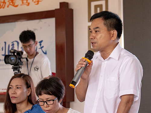 7月10日上午,广东外语外贸大学信息科学与技术学院赴清远市清新区乡村学校少年宫教育帮扶暨大学生暑期三下乡社会实践活动午在清新区何黄玉湘中学举办了开营仪式。信息学院麦培年副书记、清新区教育局创文办罗丽娇主任、梁小美主任、何黄玉湘中学梁锦屏副校长校长以及9个少年宫负责联络的老师和学院全体辅导员参加开营仪式。在开营仪式上,麦培年代表学院做讲话,指出了开展暑期教育帮扶的重要意义,介绍了学院开展暑期三下乡的基本情况,对开展好2018年暑期三下乡提出希望与要求。清新区教育局创文办罗丽娇主任、志愿者代表陈志文分别进行专题讲话。