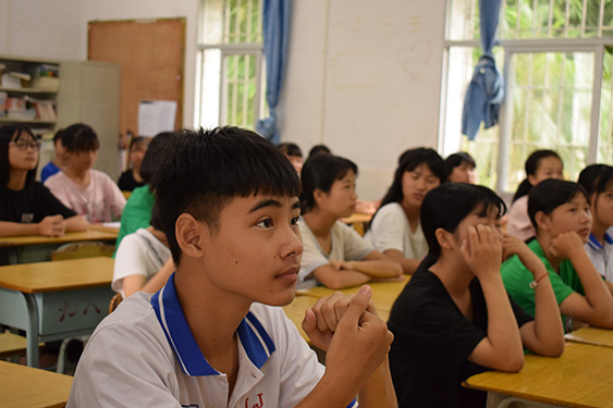 本网讯 7月15日,是广东外语外贸大学信息科学与技术学院Oasis服务队来到清远市清新区石坎中学的第六天。经过几天的相处,队员们对学生们有了更加深入的了解。在教学的工作上,老师们经过多日的准备,在这些天开展了多门特色课程。同学们在课堂上积极发言,多次与老师互动。