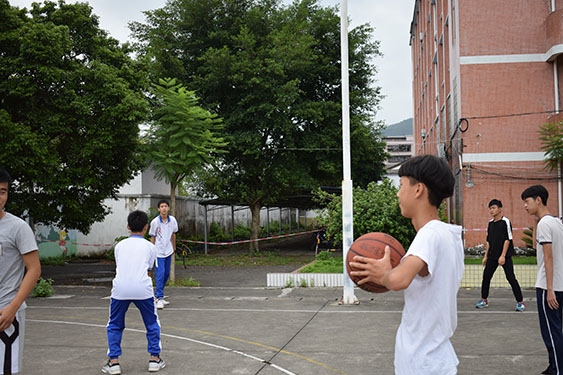 经过了篮球课第一课时的训练,同学们已经了解了有关篮球的理论知识和一些基本的运球、传球动作。在今天的篮球课上,同学们在课前就有序的排好队列。在篮球老师陈汉武的带领下,同学们先进行了热身运动,确保全身都得到舒展后,篮球第二课时开始了。老师先带同学们复习了上节课所学的内容,从基础的运球、传球开始,老师将同学们分成四个小组,分别围成一个圈同学们相互配合进行练习。约二十分钟后,老师开始示范、教授三步上篮的基本知识和动作。