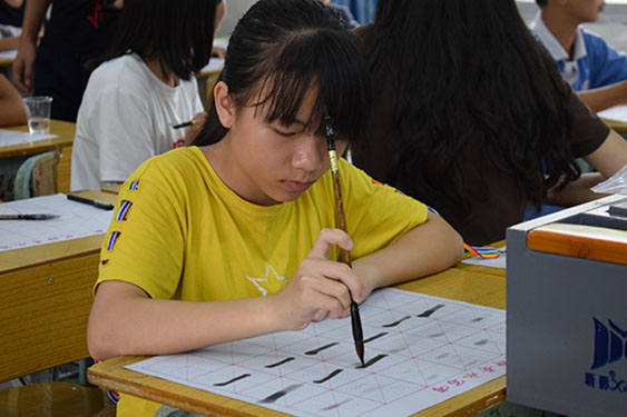 同学在认真练习书法笔划