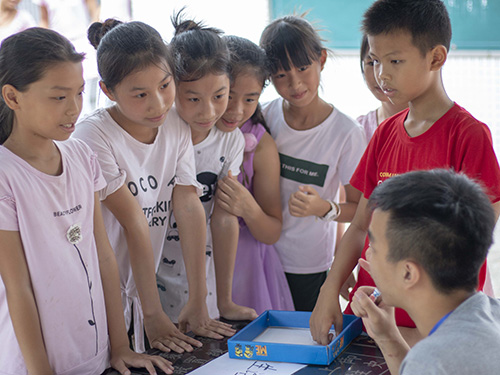 本网讯 2018年7月15日,是广东外语外贸大学信息科学与技术学院Pixels服务队到达清远山塘镇山塘中心小学的第六天。经过文宣组以及义教组的紧张准备,Pixels服务队的像素方块游园会在孩子们的欢呼声中拉开帷幕。