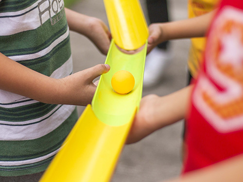 特别是在进行“管道乒乓球搬运工”这个项目时,孩子们一开始时都只想更快完成它,殊不知没有团队合作根本无法在有限时间内完成。在大哥哥大姐姐们的提示下,他们终于开始静下心来认真思考,然后开始进行热烈的讨论,考虑最好最稳通过项目方法,最终默契地通过团队合作完成挑战。