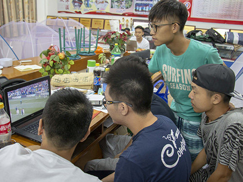 此次下乡刚好和四年一界的世界杯碰上了,队伍中有不少的球迷,每当有球赛的晚上,总会聚在电脑前观看直播。世界杯总决赛当晚,队员们早早的准备好饮料和零食,在电脑前等待决赛的开始。比赛开始后,队员目不转睛地看着屏幕,不愿错过每个精彩进球的一刻。每当有进球的时候,队员们欢呼声和呐喊声几乎可以充满整个校园。