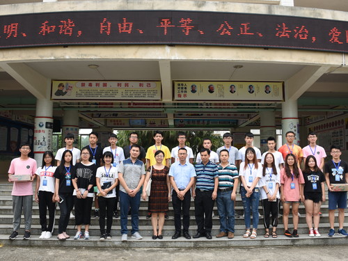本网讯 2018年7月18日星期三,是七月辰光服务队来到清远市清新区三坑镇中心小学的第9天。今日,广东外语外贸大学信息科学与技术学院党委书记敖湘晖书记、党委副书记麦培年副书记及辅导员老师谢石顺老师,在百忙之中抽出时间,再一次莅临三坑镇中心小学,对我队进行了慰问指导,同时还带来了慰问品。