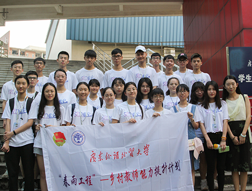 随后广东外语外贸大学信息科学与技术学院学生代表杨明智发言,他对清远市清新区政府、清新区教育局对三下乡活动的关心与支持表示感谢,并希望各位队员能在此次三下乡活动中有所收获。