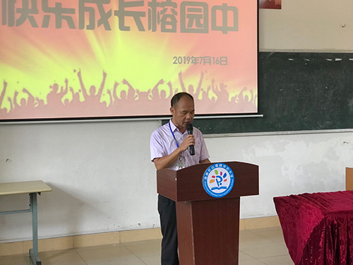 本网讯 2019年7月16日9时,ECHO三下乡志愿服务队于山塘中心小学多媒体教室举行“踏梦远航”开学典礼。校长孟庆忠及各位领导老师、山塘中心小学家委会家长及参加本次暑假乡村学校少年宫的200余名学生出席了本次开学典礼。本次活动由副队长王雨丝主持,开学典礼分为三项议程。
