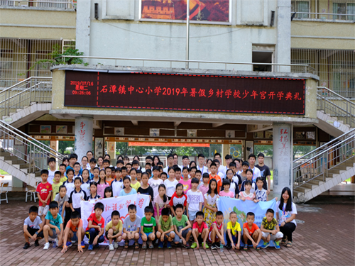 本网讯 2019年7月16日,是广东外语外贸大学信息科学与技术学院WeDream三下乡服务队来到清远市清新区石潭镇中心小学的第二天。队员们早早起床,准备即将到来的开学典礼。小朋友们也很热情,早早的来到学校与队员们见面。