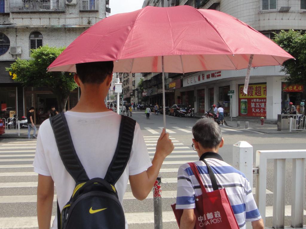 庾焯华为带路的热心爷爷撑伞