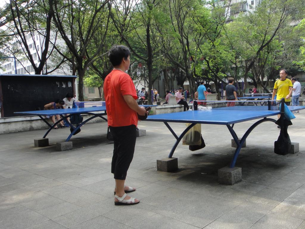 在采访老人的过程中,调研小队几乎走遍整个公园,看到了很多的体育设施,有乒乓球桌,有篮球场,也有各种运动器材,在公园内随处可见老人们在三五成群地锻炼身体。除此之外还有各种休闲活动,有的拿着话筒在那唱歌,有的在跳着广场舞,也有的在那玩着各种古典乐器,各种休闲活动可谓极其丰富。但占比最多的还是在打扑克牌的人群,公园里面除了道路之外的地方,几乎每走十步就有一套石制的座椅,上面就会有几个老人在打扑克牌。可见当地政府对老年人生活的重视。
