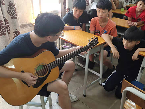 义教组的屈前顺老师在一班用吉他教授了同学们基础乐理。他从读谱、音程、和旋、节奏、节拍入手,用简单易懂的方法讲解了乐理基础入门知识,并用吉他给同学们弹奏和弦,给予同学最直观感受。在他的带领下同学们视唱了《小星星》、《虫儿飞》和《欢乐颂》等耳熟能详的音乐片段,课堂气氛欢快活泼。本次课程同学对乐理知识有一定了解。
