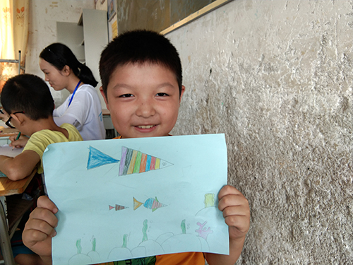 小朋友们一如既往的活跃,义教组组员邓冰晴在课堂上首先带着小朋友们回顾了一遍昨天的教学内容,并对回答正确的小朋友们给予奖励。随后一首较为简单的英文歌Monsters打开了今天新的一页,邓冰晴还在教学过程中结合了一些英语连读的知识,小朋友们在欢笑和歌声中学到了许多。当剪刀在纸上沿着铅笔的痕迹剪下,纸张在小朋友的手中旋转,再旋转,展开之后一张张各具特色的窗花也在小朋友的手中悄然绽放,欧阳燕娜的剪纸课提高了小朋友的动手能力,有些小朋友还在自己的作品上写下对老师的话。