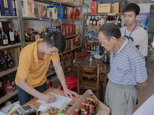 为了调查调查清新区禾云镇镇中心的交通发展情况,调研组顶着烈日穿梭在禾云镇的大街小巷,走访禾云镇街道上的小店店主,派发问卷,调研组各成员工作到将近饭点才回到禾云小学。