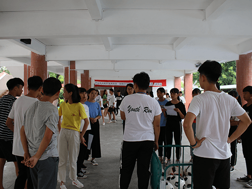 上午7:20,队员们在简单地用过早餐之后便早早地赶去进行布场工作。天公不作美,布场期间下起了雨,队员们赶紧采用应急预案,选择在架空层与课室内进行布场。在紧锣密鼓的准备工作做好后,队员们依然在紧张地复习每个游戏的流程与规则,生怕正式开始时会出现什么乱子。