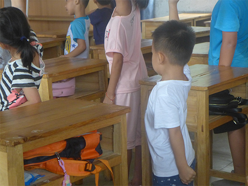 少儿趣味班的第二节课是绘画展示和闭幕式节目——手语操《我真的很不错》的复习。小朋友绘画的主题有夏天和字母创意。义教组的吴怡老师邀请小朋友一个个上台展示并向大家讲解自己的画。展示完毕后,老师对上台的小朋友给出了评价和鼓励。在收到老师的鼓励后,一些平日里顽皮大胆的小朋友,在台上带着稍稍腼腆的笑容看着大家,好像都有点不好意思了。