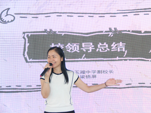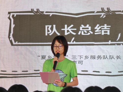 广东外语外贸大学“夏乡萦梦”三下乡服务队队长李可总结了队员们的工作。李可首先指出了本次少年宫暑假班和去年的不同点并由此带来的影响,“本次的乡村学校少年宫暑期课程,有了很不一样的创新——第一次由三下乡服务队的队员们主导来设计课程、教授课程。这种双赢的举措,不仅让贵校老师们更加轻松,也让我们的队员们得到了更大的成长。这对我们来说,既是机遇,也是挑战。”同时具体阐述了“开班数量多,班级规模大”的挑战和“面向社会、面向未来”的机遇。最后李可代表“夏乡萦梦”三下乡服务队全体队员表达了对何黄玉湘中学领导老师和学生们的感谢。