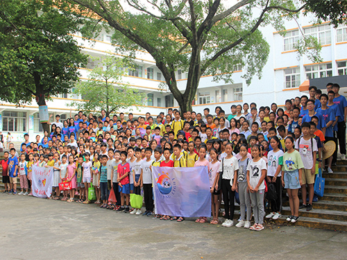 逐光盛夏服务队全体队员与小朋友们合影