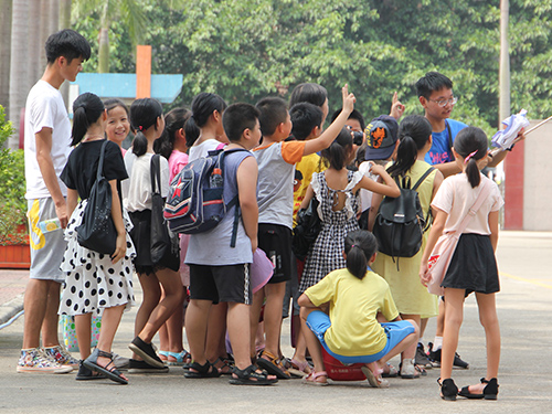 下午两点半,在车子来接逐光盛夏服务队全体成员时,有一些小朋友来到小老师的办公室,跟老师说一声再见,同时用期盼眼神问老师们:“老师你们下次还来吗?”最后依依不舍地送队员们上车,在车窗外向队员们挥手,同时队员们也向他们挥手告别。
