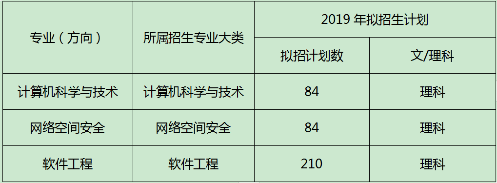 2019年各专业拟招生计划表