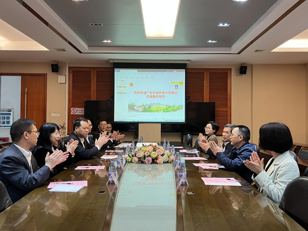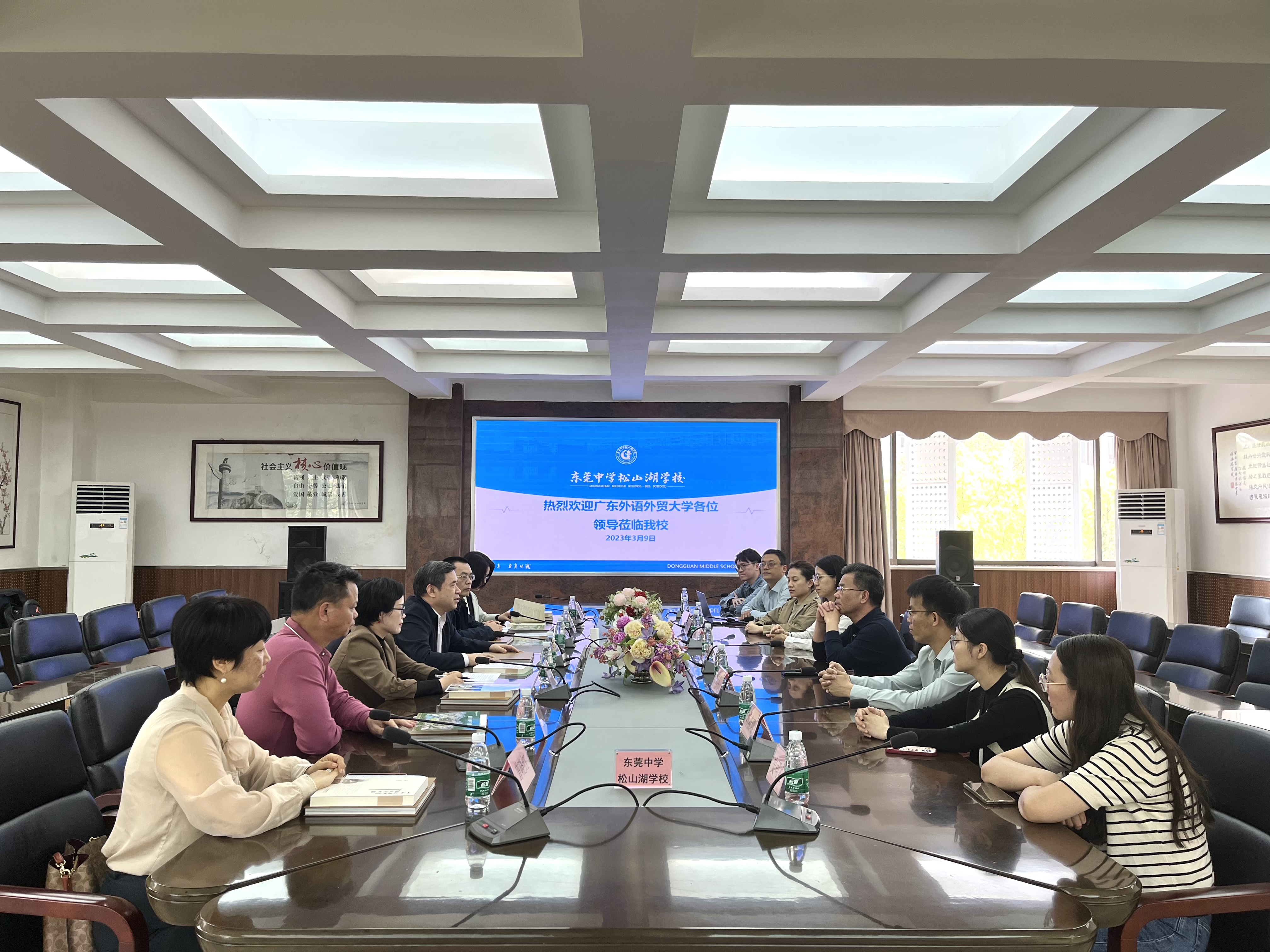 东莞中学松山湖学校是我校2019年授予的“优质生源基地”,三年来,信息学院代表学校与该校始终保持良好往来。此次焦方太副校长一行受到了热烈的欢迎。东莞中学松山湖学校校长黎德文、教务办副主任张喜林、高三级长王志军等6名优秀广外校友教师代表出席欢迎座谈会。在座谈会上,黎德文校长结合在东莞中学松山湖学校18年的管理经验对学校的办学理念及特色娓娓道来。学校宣传片更把该理念展示得淋漓尽致。焦方太副校长高度赞许了东莞中学松山湖学校的育人理念,欢迎更多的学生来到广外。他介绍了我校历史、使命、人才培养特色、专业设置、国际化等情况。我院院长王常吉介绍了信息学院人才培养情况,并重点介绍了学生科技创新教育情况。双方与会人员进行了热烈的交流。
