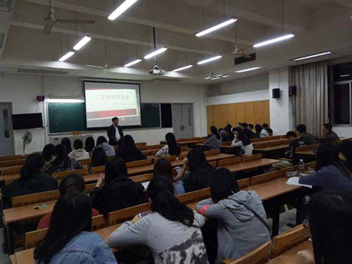 本网讯 2017年4月13日晚,信息科学与技术学院在教学楼F107举行14级电子商务专业中国广东进出口商品交易会实习动员大会。主讲人麦培年书记劝勉同学们在广交会中要端正心态,找准定位,珍惜学习机会。