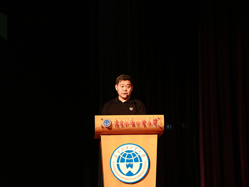 本网讯 2017年10月19日,广东外语外贸大学信息科学与技术学院2017年“挑战杯”竞赛暨第十一届科技创新实践月开幕式于南校区B8学术报告厅成功举行。出席本次开幕式的嘉宾有:腾科网络总裁唐慧,广东外语外贸大学团委书记苏奕,就业指导中心主任谢秀兰,学生处副处长国佳,英语教育学院党委副书记徐昶斌,艺术学院党委副书记张莉,信息科学与技术学院院长蒋盛益,党委书记敖湘晖,副院长柯晓华、高东发、谢柏林,党委副书记麦培年,以及信息学院各系主任、辅导员、其他兄弟学院团委书记等以及学生代表580余人出席本次开幕。