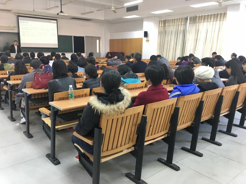 2018年1月15日下午,信息学院在南校区教学楼G105召开本学期总结大会,回顾2017年走过的历程,总结成绩与不足,展望2018年全新的征途,规划重点和蓝图。信息学院70多位教职工出席会议,总结会由信息学院党委书记敖湘晖主持,院长蒋盛益作报告。