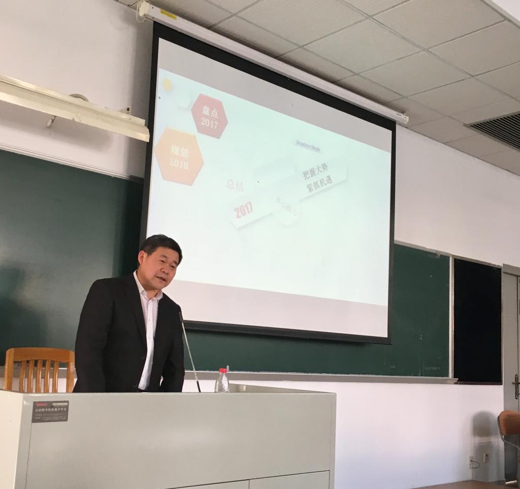 在报告中,蒋盛益首先从党建思想、学科建设、师资建设、教学评估、国际合作、实践育人、学生就业、主办学术活动和科研工作等多方面盘点了2017年的工作,指出2017年对学院是意义非凡的一年:学院更名为信息科学与技术学院、成立网络空间安全学院、成功申报网络空间安全一级学科硕士和工程硕士授权点、引进第一位外教、迎来第一位国际交换生、在挑战杯和网络安全方面的赛事中取得历史佳绩、成功举办第三届“网络空间安全与人才培养高端论坛”并赢得广泛赞誉等。蒋盛益引用习近平总书记的新年贺词“幸福都是奋斗出来的”,新的一年我们“必须不驰于空想、不骛于虚声,一步一个脚印,踏踏实实干好工作”,脚踏实地让2018年更加幸福、获得丰收。