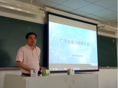 紧接着,信息科学与技术学院麦培年书记就以往经验总结,为同学们提出四点要求。第一,同学们要做好思想、纪律和意识上的准备,同学们参与到中国进出口商品交易会(即广交会)这一个的重要平台,同学们代表着广交会,更代表着中国形象。同学们不但要严守纪律,服从管理,而且要保持昂扬的斗志,善始善终,带着观察和思考去学习,更好地应对全方位的锻炼和考验。第二,守住纪律和道德的底线。第三,珍惜机会,认真学习,在培训和实习中掌握各种知识和提高对应能力。第四,提高团队意识,增强团队明凝聚力。