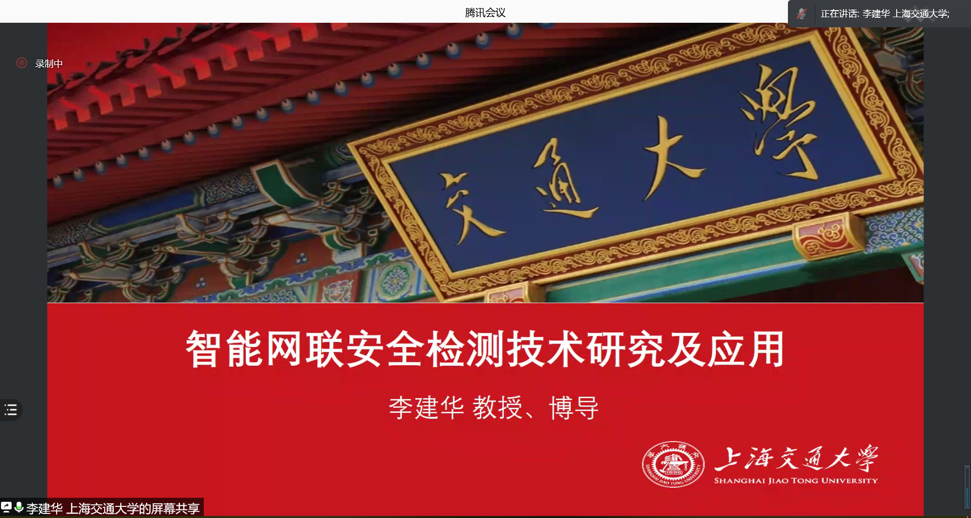 本网讯 2021年11月11日下午,上海交通大学李建华教授在线上作客著名教授论坛第522讲,做“智能网联安全检测技术及应用”主题报告。本次论坛由人事处、教师发展中心主办,信息科学与技术学院承办,由信息学院院长蒋盛益主持。