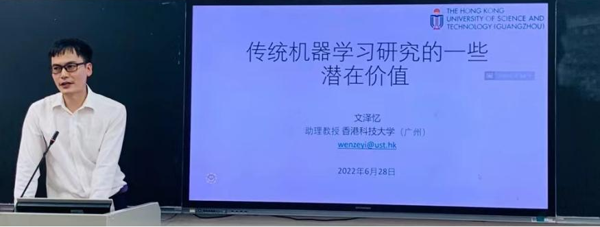 本网讯 2022年6月28日下午,香港科技大学(广州)文泽忆博士为我院师生开展主题为“传统机器学习研究的一些潜在价值”的学术报告,信息学院教师、研究生和感兴趣的本科生聆听了报告,讲座由信息学院李霞副院长主持。