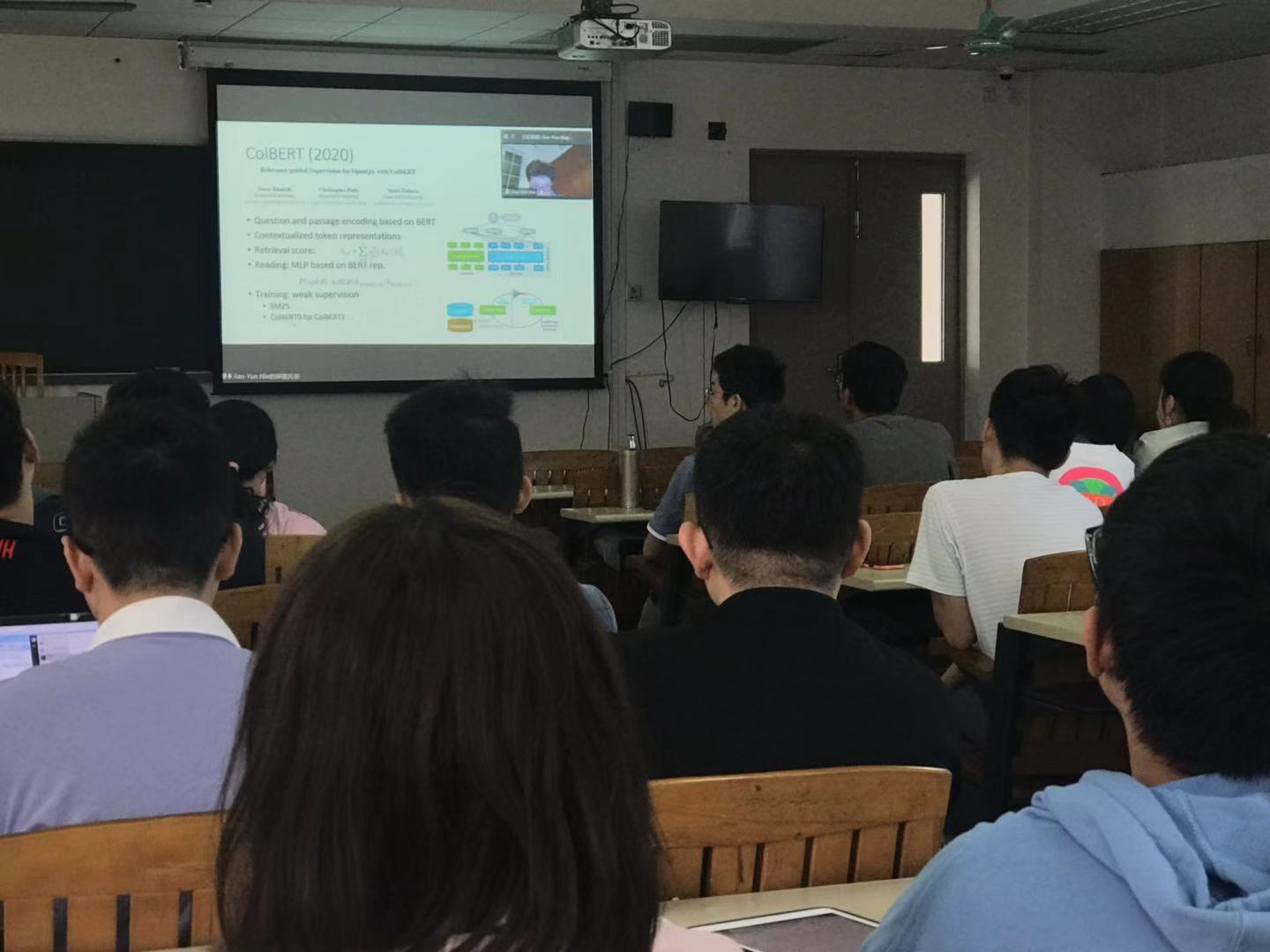 聂建云教授首先以“Smooth Training for Open-Domain Question Answering”为题进行学术分享。聂教授从Open-Domain Question Answering(开放式问答)的背景出发,概述了目前在开放式问答领域的一些大家重点关注的问题,并沿引了领域内学者已有的成果和目前常用的模型方法如DrQA、DsQA、ColBERT等,来探讨大家在研究过程中可能会遇到的问题与解决思路。聂教授通过几个实验案例阐述不同模型对于结果的影响,进而更深入介绍了SmoothTraining的特点,以及它在开放式问答中的作用。讲座最后,聂教授也延伸谈到领域内未来研究方向以及SmoothTraining迁移到其他任务的可能性。