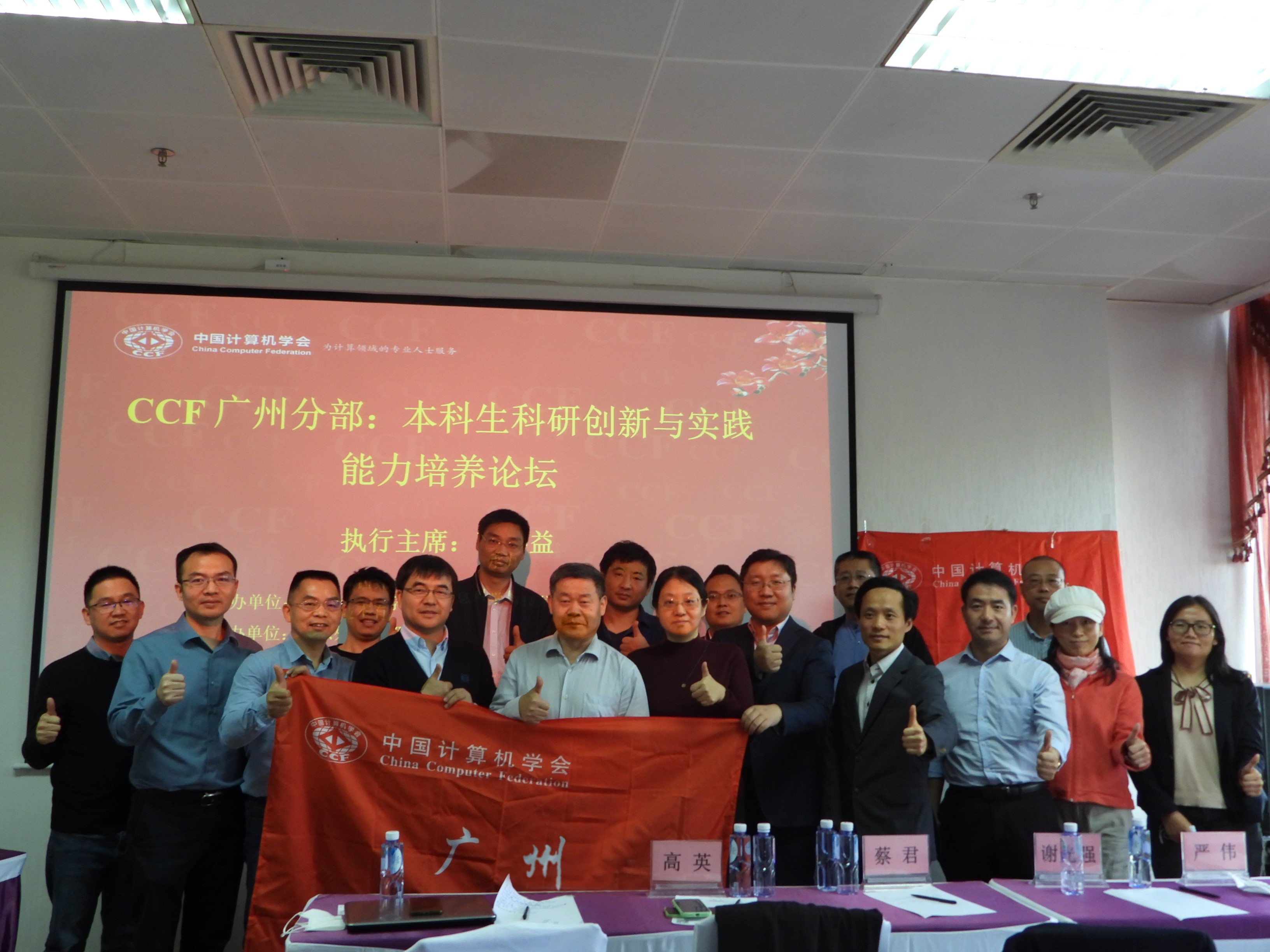 2021年11月28日,由中国计算机学会(CCF)主办,广东外语外贸大学信息科学与技术学院承办的“本科生科研创新与实践能力培养论坛”在广州大学城中心酒店三楼南湖厅顺利召开。本次论坛由CCF广州执委、广东外语外贸大学信息科学与技术学院院长蒋盛益教授担任执行主席。论坛邀请了华南理工大学计算机学院副院长高英教授、广东技术师范大学网络空间安全学院院长蔡君教授、广东工业大学计算机学院副院长谢光强教授、广东外语外贸大学信息科学与技术学院院长蒋盛益教授、华为技术有限公司计算产品线鲲鹏高校生态发展总监严伟、奇安信集团广东省分区行业总监李双喜作分享报告。会议吸引了华南师范大学、广东财经经大学在内的十多所高校和企业人员20余人线下参与。华为技术有限公司和奇安信集团提供赞助支持。