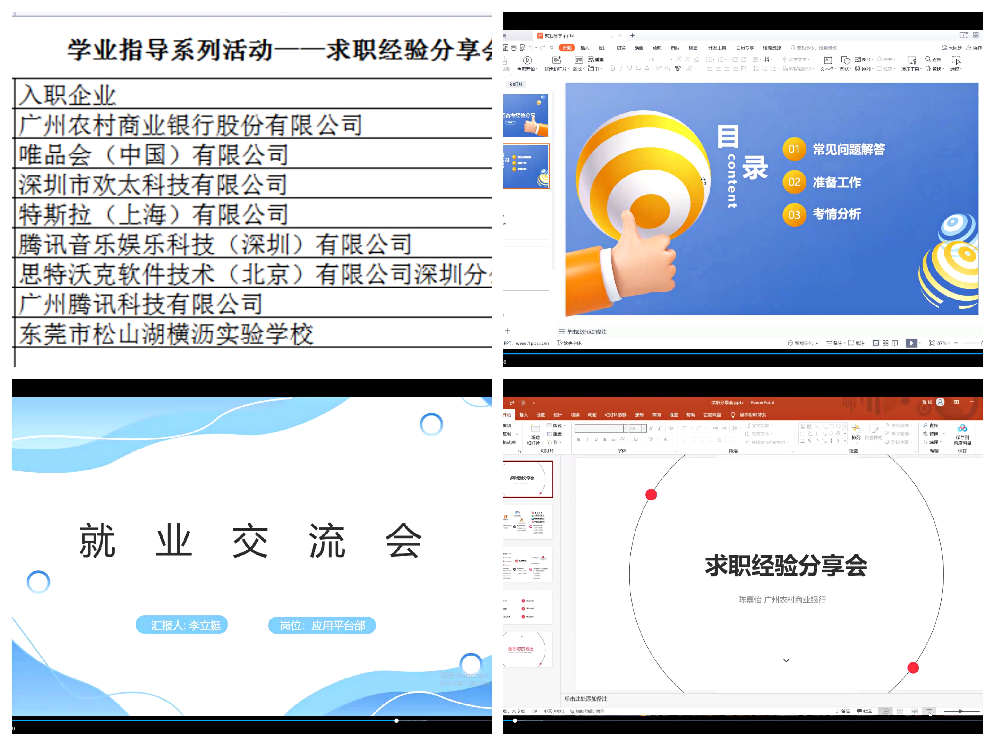 本次求职经验分享会属于信息学院学生发展中心系列活动,通过求职经验分享交流,帮助同学们找准努力方向,人职匹配,进而帮助同学们树立了正确的就业观。