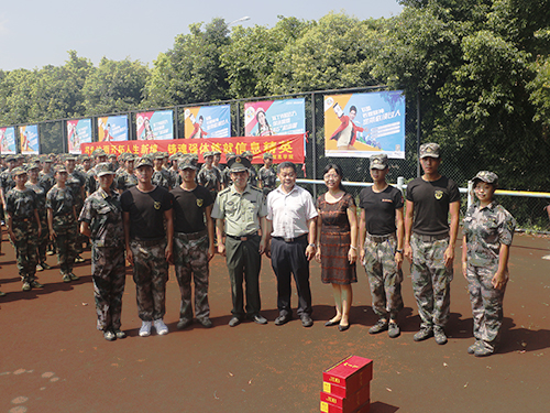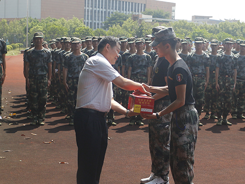 本网讯9月5号上午,思科信息学院领导亲自莅临军训现场,对顶着烈日军训的各位新生及他们的教官们进行了亲切的慰问。本次到临现场的有思科信息学院院长蒋盛益,党委书记敖湘晖,党委副书记麦培年,团委书记兼15级辅导员谢石顺,16级辅导员高男和张文萃,以及团学干部和各班班导。本次的慰问不仅给新生们带来充满欣赏性的舞蹈和歌曲,还带来了清凉可口的加多宝来给他们去除炎夏的燥热。
