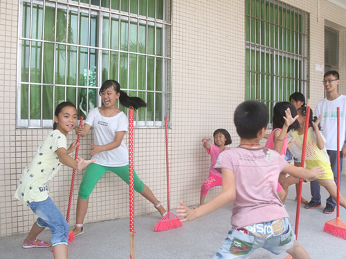 本网讯 为彰显小朋友们的青春与活力,提高他们的身体素质,7月21日,夏日拾影三下乡服务队在台山市北陡镇那琴小学举办了一场户内与户外相结合的趣味运动会。