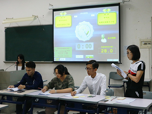 本网讯 10月13日晚,广东外语外贸大学信息科学与技术学院第三届“新生杯”辩论赛在教学楼如火如荼地进行。其中,计算机1705班班队和计算机1706班班队就“短期支教利大于弊/弊大于利” 展开激烈论战。出席此场比赛的嘉宾有信息学院15级队长林卓群,法学院16级队员赖思行,信息学院16级队员余碧容。正方计算机1705班班队的观点为“短期支教利大于弊”,反方计算机1706班班队的观点为“短期支教弊大于利”。