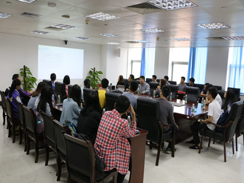 在办事大厅简要介绍完航交所的现状及发展后,工作人员带领众人进入接待室,透过接待室的大玻璃窗,逐一介绍窗外建筑,同学们一览南沙码头的胜景。窗外港口的海景,海上的船只,是同学们对海港的印象,南沙游艇会那偏欧式的建筑风格让众人陶醉,流连忘返。欣赏完美景后,众人随工作人员进入会议室,进一步了解航交所的详细情况,在工作人员详细认真的介绍下,同学们逐渐对航交所的历史,下属企业,部门架构,党支部建设,政策支持,核心业务及其在互联网上的发展有了更深刻的了解。