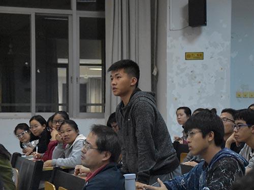 随后是由蒋盛益院长以及各系主任对同学提出的问题进行答疑解惑的环节,在解答之前,蒋院长还忍不住插了个“题外话”。他指出,在经历了一个学期后,同学们之间的差距逐步显现出来,这主要是同学们的心态问题。院长希望同学们不要仅满足于课本上的知识,更要学会探索课外知识。在问答的环节中,同学们提出了自己对专业课程的一些疑惑,蒋院长以及各系主任都耐心地一一解答。