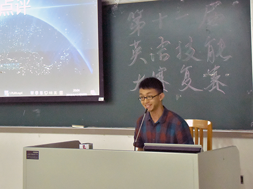 激烈的比赛结束后,评委昝健睿对此次比赛进行了点评。他指出,在比赛中,选材要紧扣主题,如何让观众在短短5分钟内迅速掌握影片传达的信息是很重要。同时他也谈到,情绪也是语言的一部分,在配音时,用情感来丰富语言,能更准确的传达信息。最后他还鼓励同学们,要从此次比赛中吸取经验教训,争取在往后的比赛中发挥更好的水平。