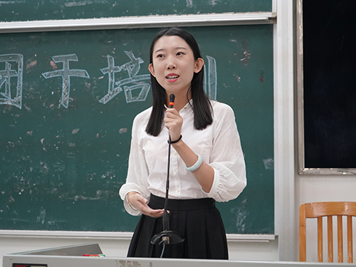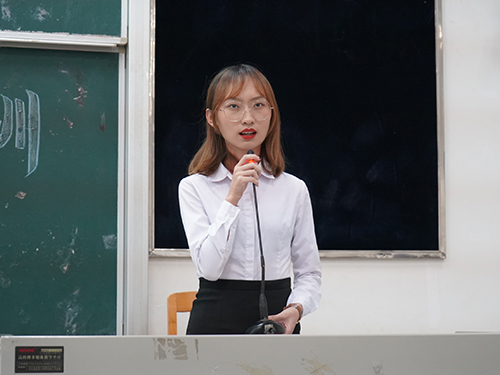 在主持人简单的开场白后,大会正式开始。首先是张文萃的讲话,她由自身经历出发,告诉我们要在大学生活中拓宽自己未来的可能性,选择做一个指引者、领导者。大家都从简短而又蕴藏深厚的讲话中感悟到了许多。