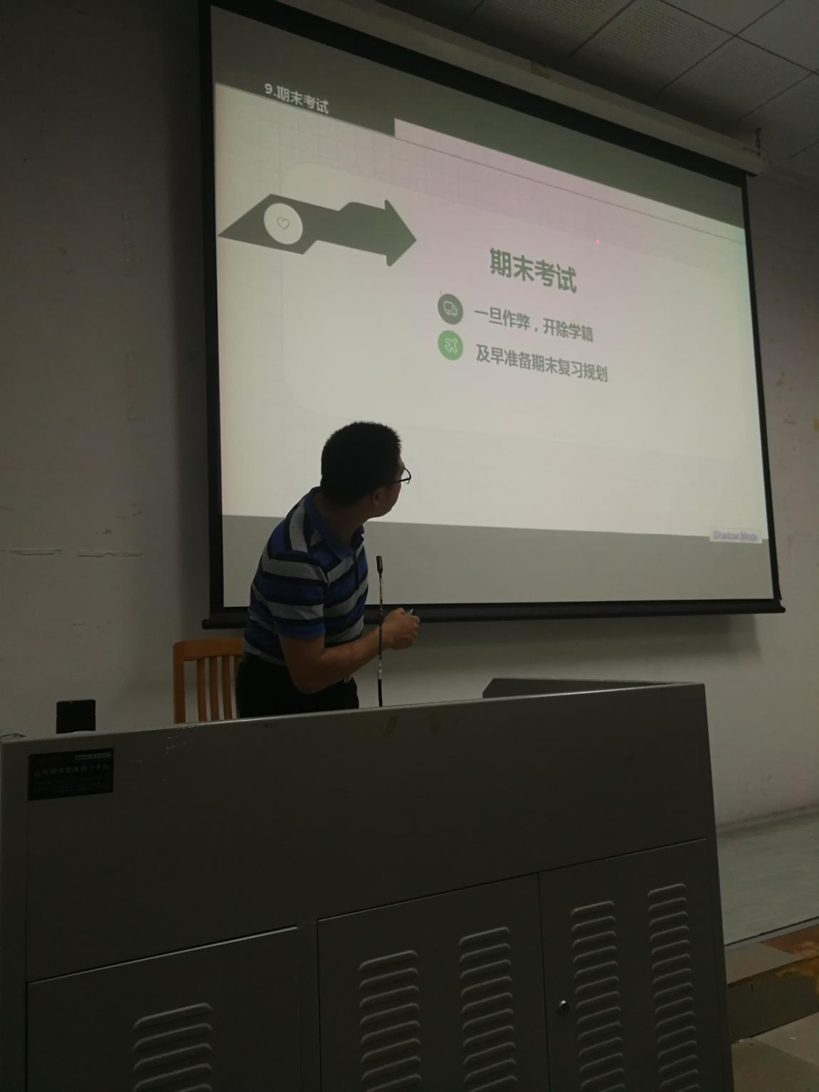 2019年6月2日晚上19:00,信息科学与技术学院/网络空间安全学院(以下简称信息学院)在教学楼F208召开2018级第二学期考试动员大会暨学期总结大会。大会由辅导员杨志增主持。参加人员有信息学院18级学生。
