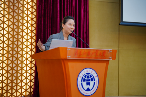 信息学院蒋盛益院长宣布“君海杯”第十三届科技创新实践月开幕,希望同学们在科技月中培育与展现创新意识和合作意识。广东外语外贸大学学生处副处长叶开预祝2019年“君海杯”科技月取得圆满成功,祝即将参赛的同学有所收获、再创佳绩。广州君海网络科技有限公司人力资源副总裁杨昊女士,介绍了君海网络的企业文化,希望与信息学院继续合作,助力人才培育。