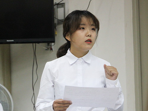 主持人简单介绍后,辩论赛正式开始。首先是双方一辩立论与四辩质询环节,正方的观点是:应该谴责自私,因为这能给自私者以提醒或警告。反方的观点是:谴责不同于批评,它是更为严厉的斥责,且具有盲目性与不可控性。质询环节中双方四辩提出的问题也是针针见血。