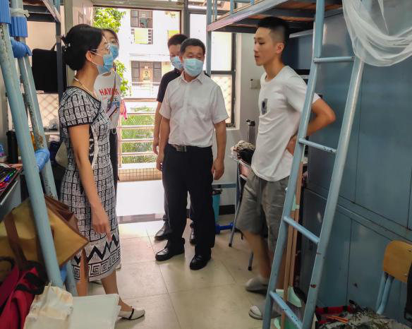 下午,蒋盛益院长、朱珍葶书记、肖锋副书记及辅导员一行专程来到学生宿舍,走访探问已经返校的同学们,跟同学们亲切交流了离校期间的学习、生活情况,关心同学们离校半年后再适应校园生活情况,提醒同学们注意疫情防控,叮嘱大家在新学期加强身体锻炼、增强体质,调整状态,积极投入到新学期的学习中去。面对学院老师们的细心叮嘱、谆谆教诲,同学们纷纷表示新学期会保持好习惯,用心学习,努力成长!